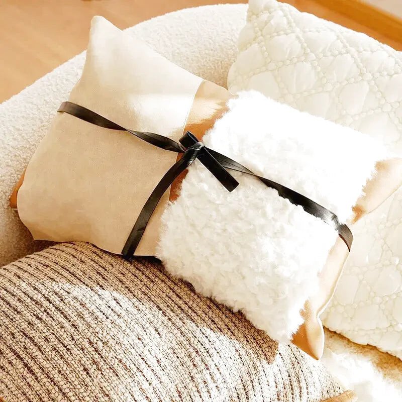 En quoi la housse de coussin marron empiècement et lien transforme une ambiance intérieure ?